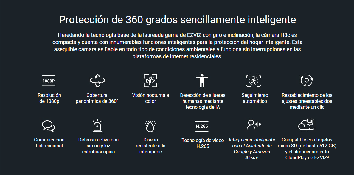 CÁMARA WIFI PTZ EXTERIOR EZVIZ H8C - COBERTURA 360° FULL HD