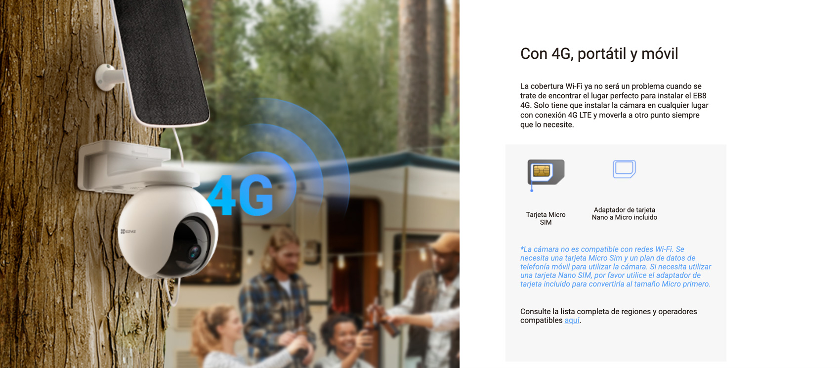 Ahora es más fácil que nunca garantizar la seguridad en los lugares que más le importan. La nueva cámara de EZVIZ supera las limitaciones de instalación ocasionadas por las redes o la electricidad. La EB8 4G funciona con baterías, sin cuerdas ni cables. Funciona con redes 4G LTE en exteriores, donde puede no haber Wi-Fi disponible. También incorpora funciones clave de los conocidos predecesores de panorámica e inclinación para exteriores de EZVIZ para ofrecer una protección inteligente y fiable las 24 horas del día, los 7 días de la semana.